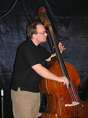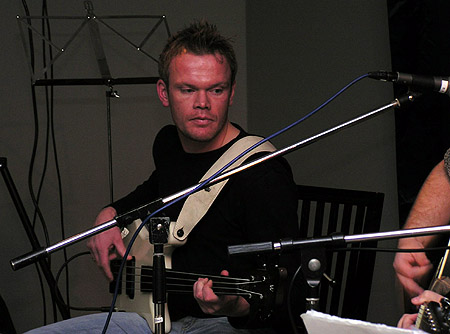 De som är ute på kanterna kommer inte med på alla bilder, så här har vi basisten Klas för sej.
