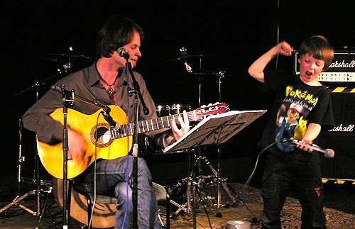På ett par av de gladare låtarna (Våren är gratis och Sonic igelkotten) fick Dick sångstöd av sin son Adrian.