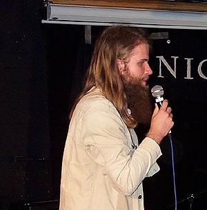 David Palm är ett annat kul återseende. Han läste så sent som på förra underjorden, och var nu tillbaka med en (helt?) ny laddning dikter. Temat var drömlogik: förvirrat och fragmentariskt. David ser ibland smått förvånad ut över det som sker i hans texter.