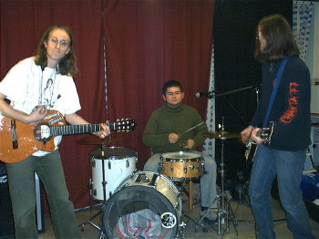 Här var sättningen lite annorlunda, som du kan se på bilderna. De tre bytte också instrument ganska ohämmat, och turades om som ledsångare.