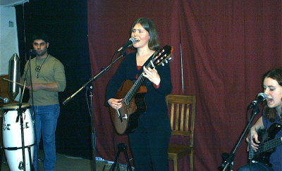 Henrik Tröst var först ut. Han körde mest solo, men inledde med en sång om trubadurens lott, där en dam vid namn... öh, hjälp mej nån... (lägger in namnet när nån kan påminna mej) hjälpte till med stämsång. Henrik sjöng mest egna sånger, men även en Dylan och en Lehrer ("Irländsk ballad" för att vara exakt).