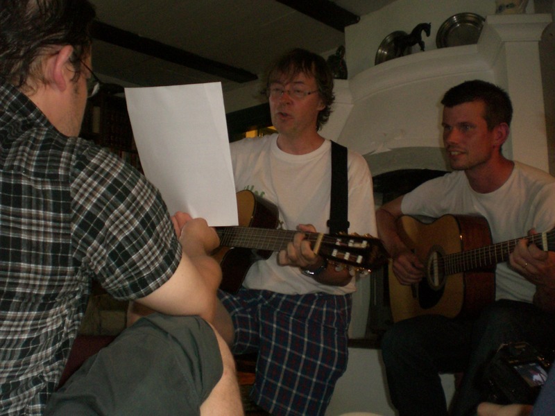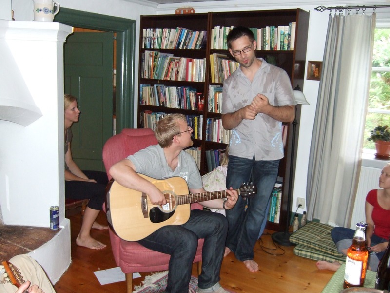 Sedan kom regnet, så vi jammade inne ett tag, turades om att spela, och kompade varann som det föll sig. Här är det Sjö och Hegardt.