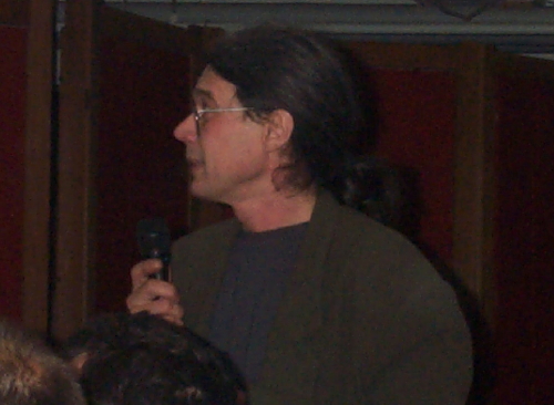 På slutet bjöd Fredrik upp mej, Dick och Peter på scen för att vara skrålkör på "Klas åker till Grekland". Observera mitt klädval! (Foto: Charlotte)