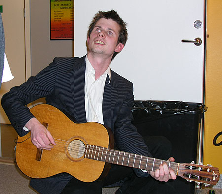 Här kommer dagens mest magstarka bilder! Fredda får ibland sår på fingrarna när han spelar, speciellt på vintern säger han. I kväll var det värre än nånsin!