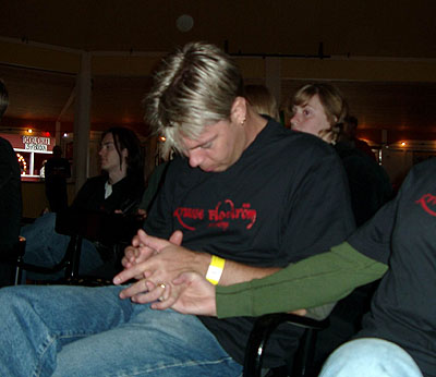 En blond besökare gjorde sin kärleksförklaring till Michael Nystås efter sista låten i lördags. De kramades och hon ville verkligen inte släppa taget. Vad Michael tyckte om det är frågan då hans fru satt i bilen och tittade på.