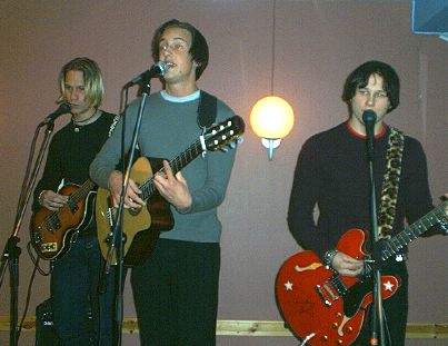 Sist ut var Martin & Raketerna, en trio från Skärblacka med medlemmar som setts kompa Fredrik Johansson. Här är det Martin Södling som är centralfigur. Mats Larsson och Johan Söderhielm håller en ganska låg profil under större delen av spelningen, som man kan ana av bilden. Det gjorde nu ingenting, för Martin har mycket bra publikkontakt. Jag är inte säker, men jag tycker nästan trion låter aningen bättre på scen än på skiva. Kanske en viss utveckling skett sen inspelningarna?