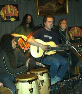Första bandet var Frasse Haraldsen och Ensamma Vargarna, ett nätt gäng på ett halvdussin personer, varav tre ägnade sig åt rytminstrument! På bilderna nedan syns alla utom trummisen.
