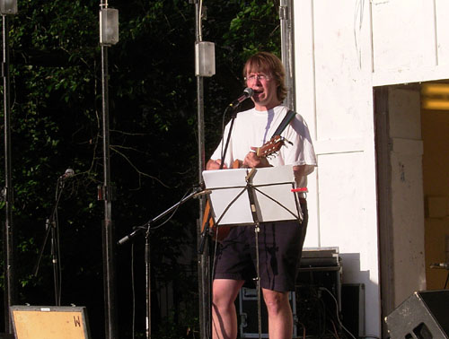 Jag såg ut såhär, och hade faktiskt kvällens enda instrument! Jag sjöng en del gammalt krafs, samt uruppförde "Stjärnfall" och "Doktor Flaska". Jag avslutade med "Spelning", som ju faktiskt är mer eller mindre skriven för att spelas exakt här!