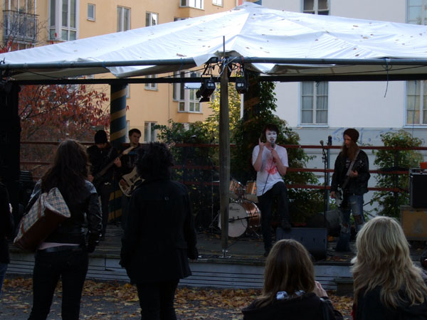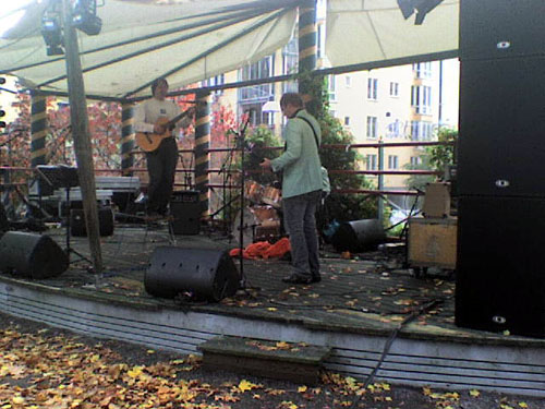Liksom 2005 var vi i Hörsalsparken, men denna gång med en rejäl ljudanläggning och till och med scenljus. På grund av problem med att få fram trummor (jag fick ringa runt på förmiddagen) så var vi sena, men en stund efter utsatt tid kom vi igång i alla fall.