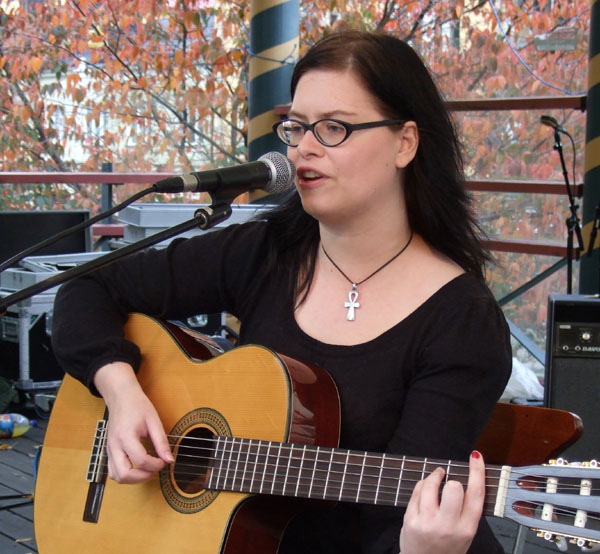 Emma var en av kvällens nykomlingar i Ljuv Musik/Underjorden-sammanhang. Hon spelade egna låtar med socialrealistisk profil. Ska man jämföra med Onzon, eller kanske snarare Maud Lindström?