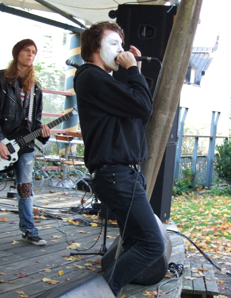 Här ser man någorlunda hela bandet. Man anar den groteska scenkostymeringen.