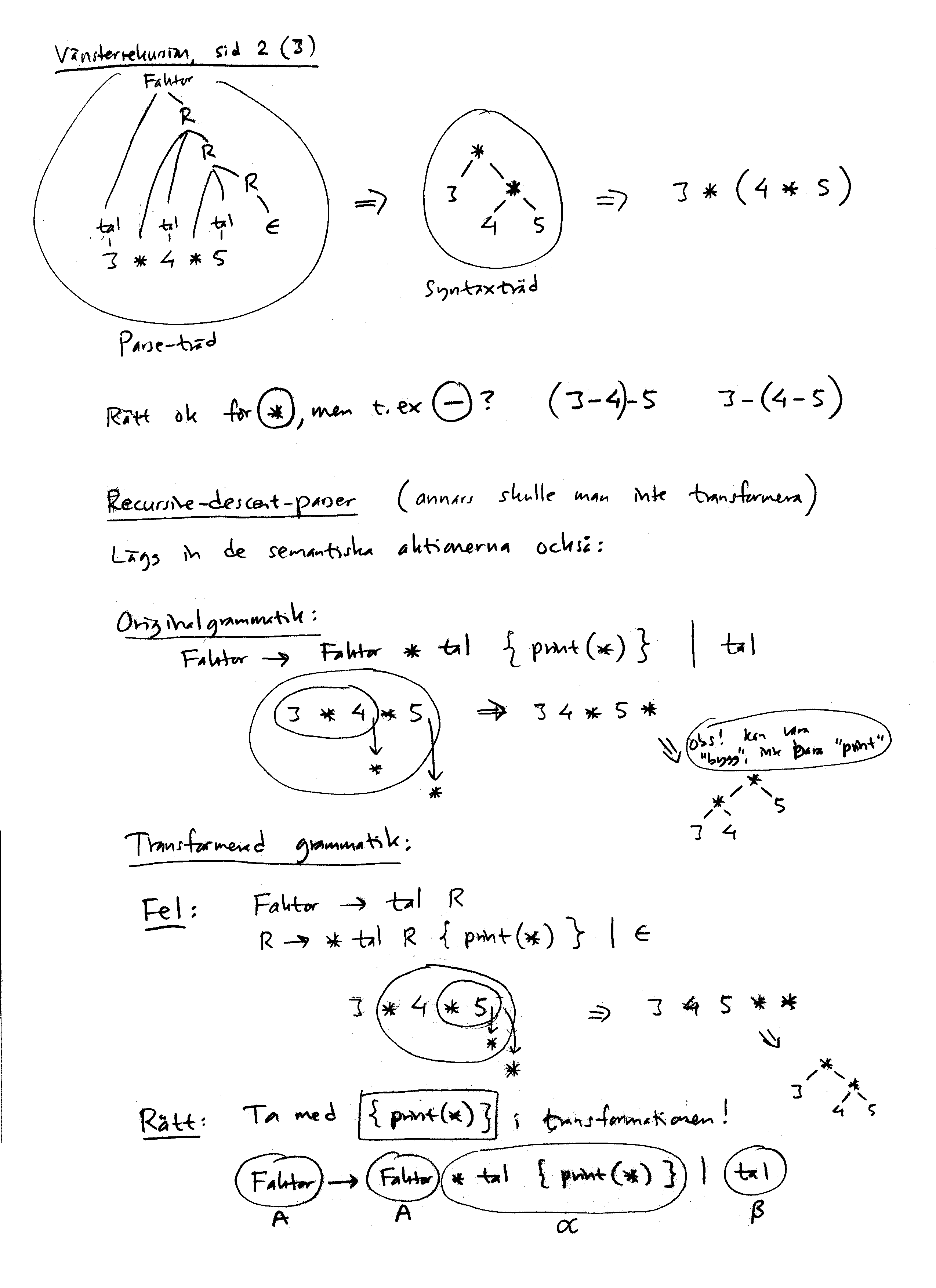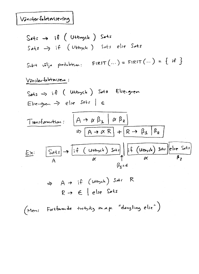 b) Vilka problem är det man vill undvika genom att göra dessa transformationer? Förklara vad som händer i parsern om man inte gör dem, gärna med konkreta exempel.