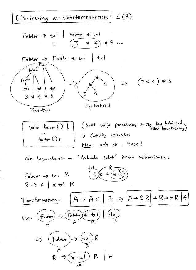 Inte svar på frågan, men några inscannade anteckningar om eliminering av vänsterrekursion: